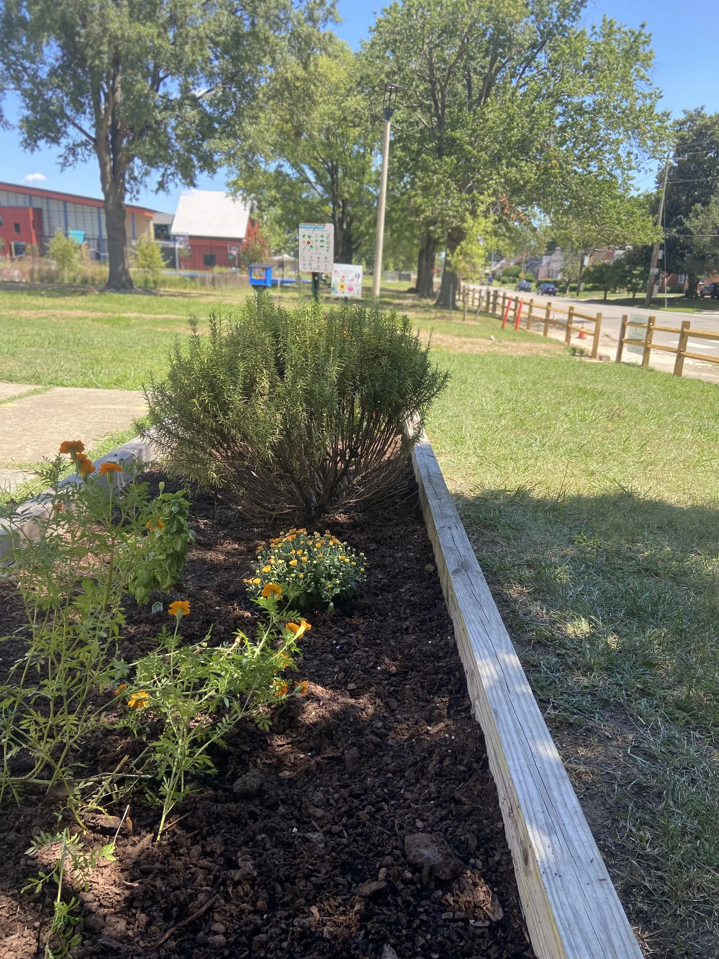 The greening group has three gardens on the Southside of Richmond that they grow and maintain. Oak Grove Garden, Hickory Hill Garden and Davee Garden. Find them on the map here.